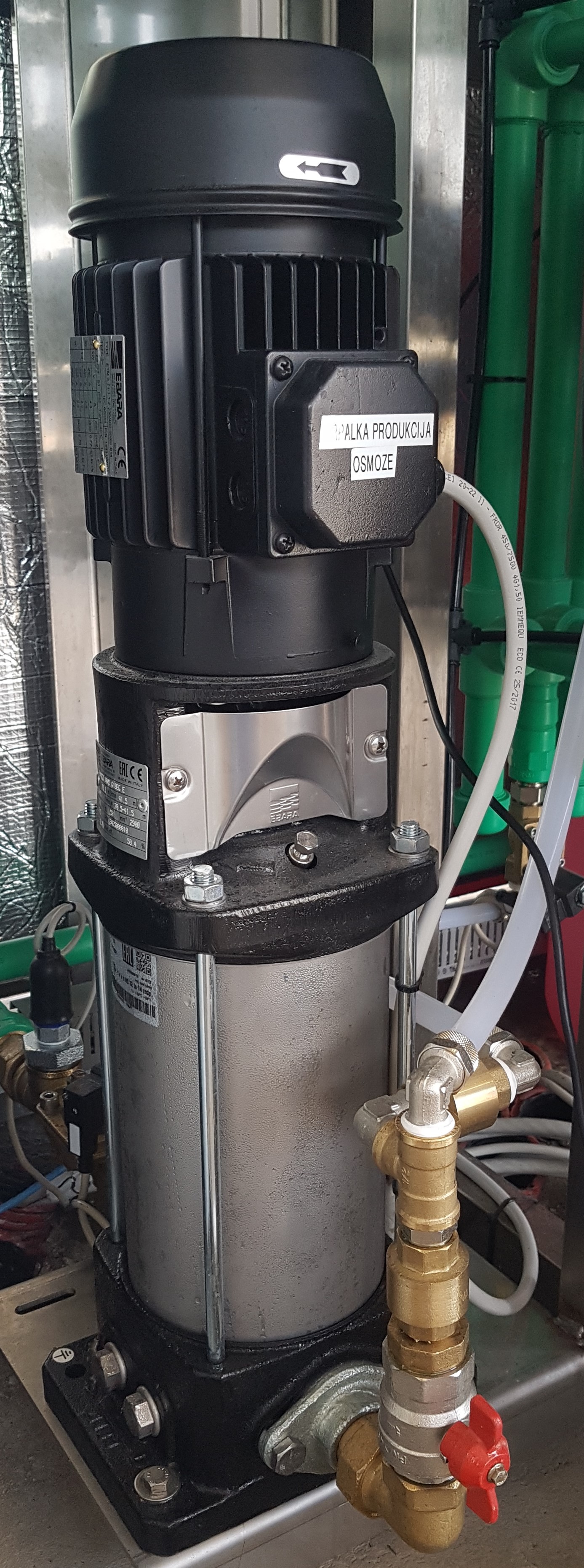 Je večstopenjska centrifugalna črpalka iz nerjavečega jekla. Velikost vgrajene črpalke se prilagodi številu membran v sistemu.