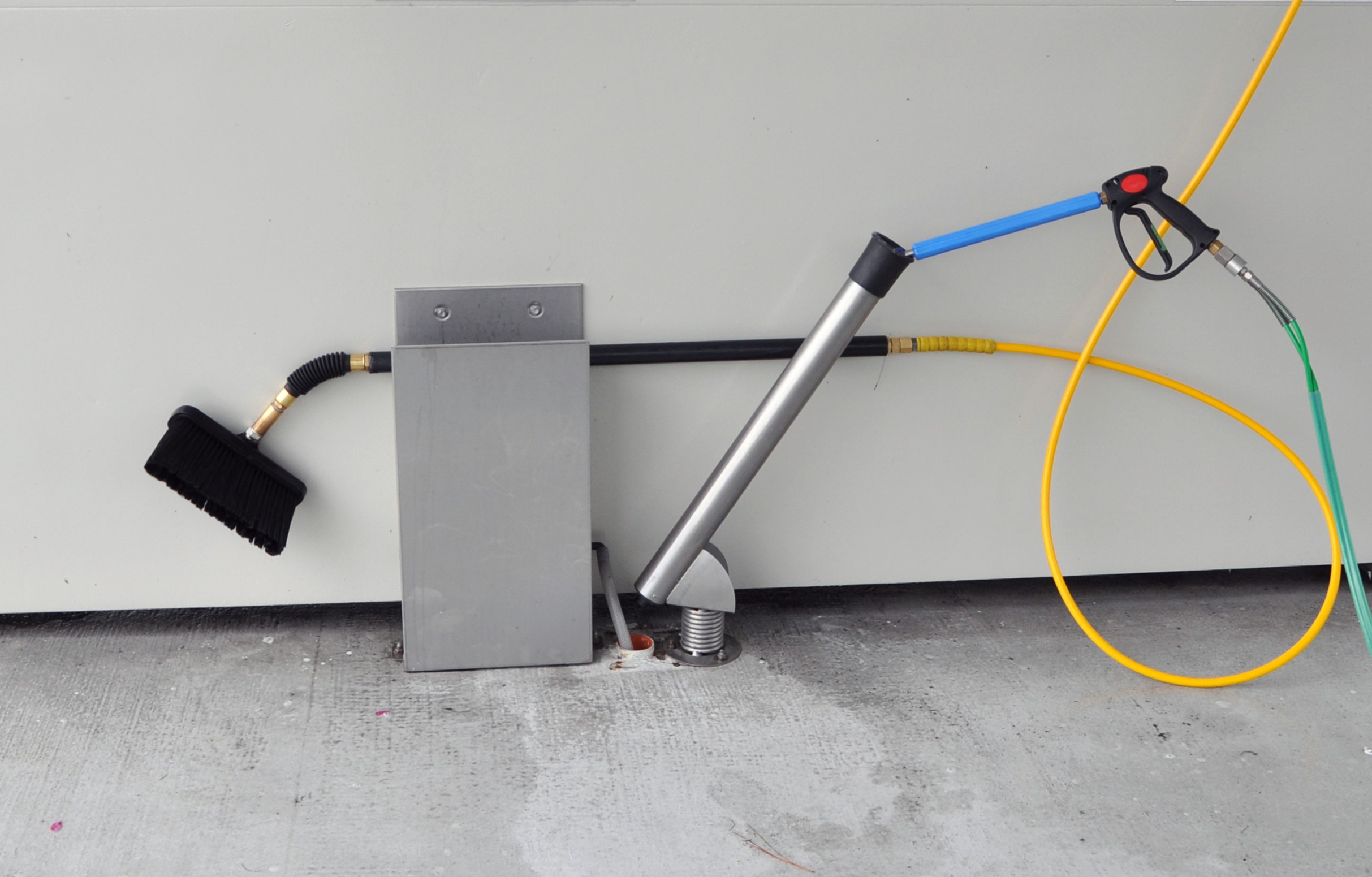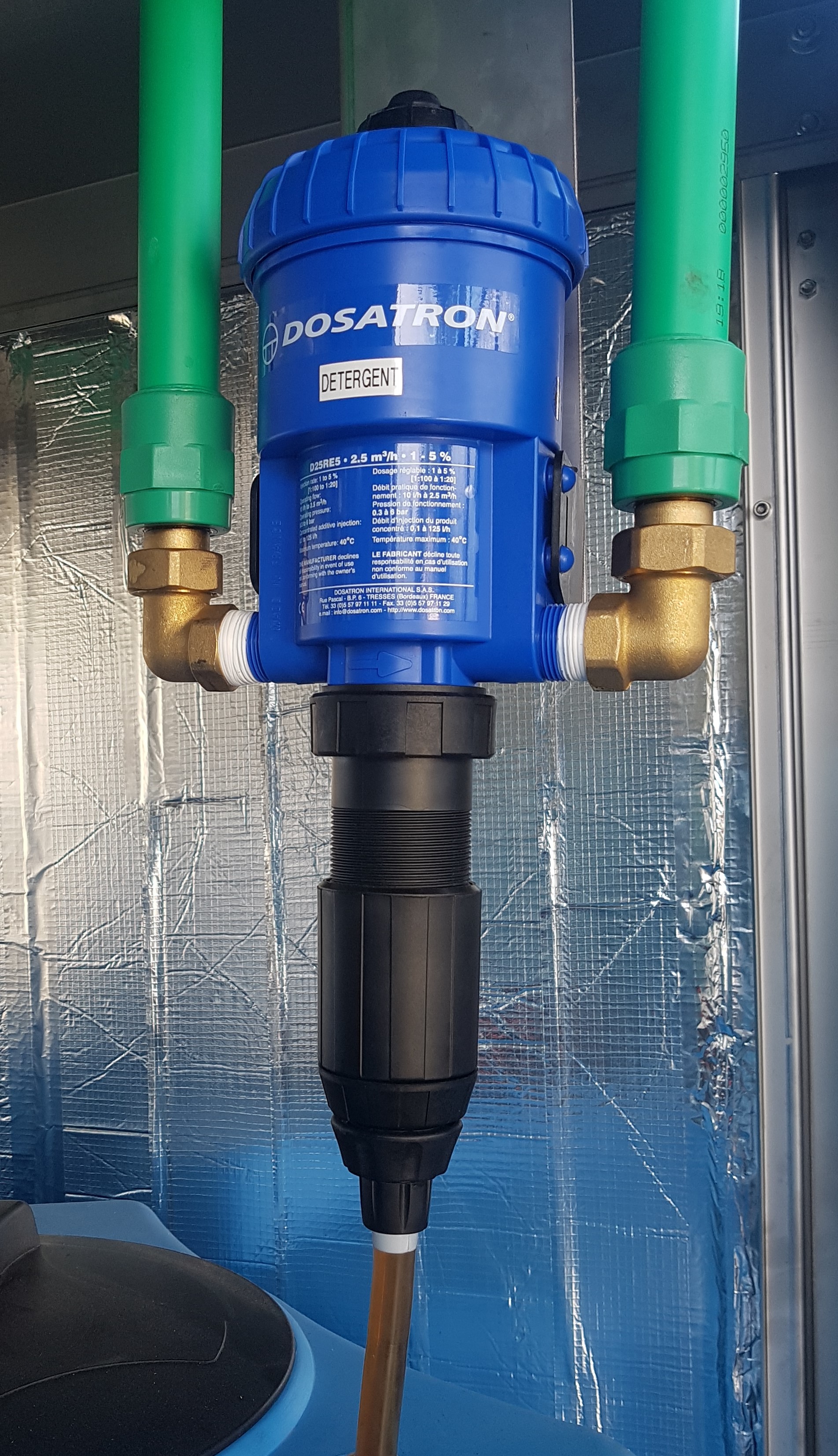 Izdelan v celoti iz nerjavečega jekla z elektro-magnetičnimi ventili in priključki. Komplet vsebuje elektronsko dozirno črpalko in impulzni števec pretoka vode. Proizvod za čiščenje platišč se injicira neposredno na vrtečo roko brez uporabe visokotlačnih črpalk. Tak sistem omogoča uporabo tudi bolj agresivnih proizvodov.