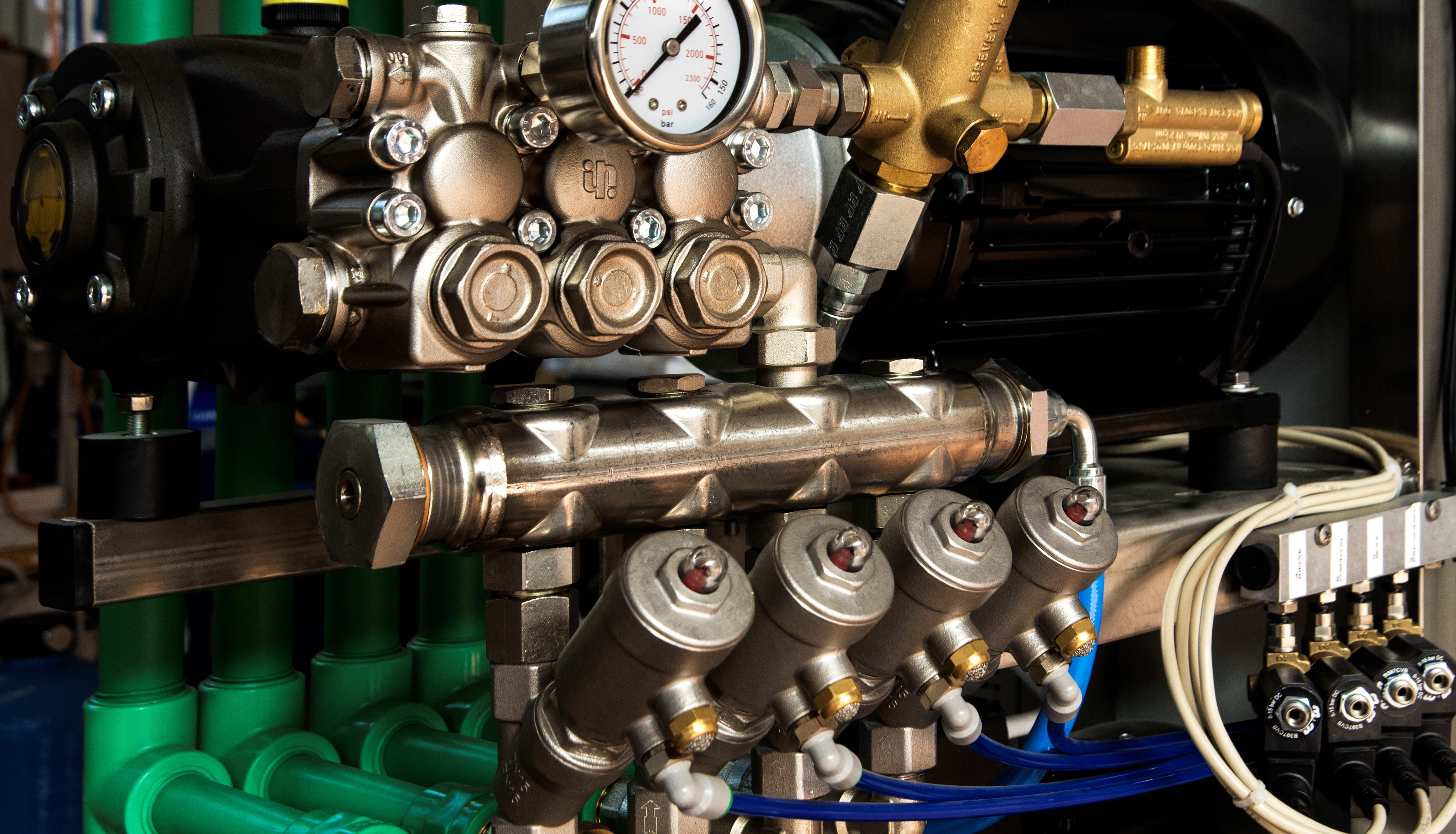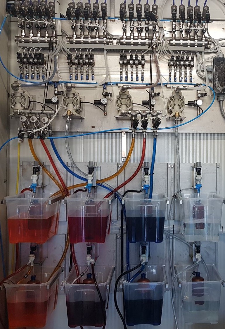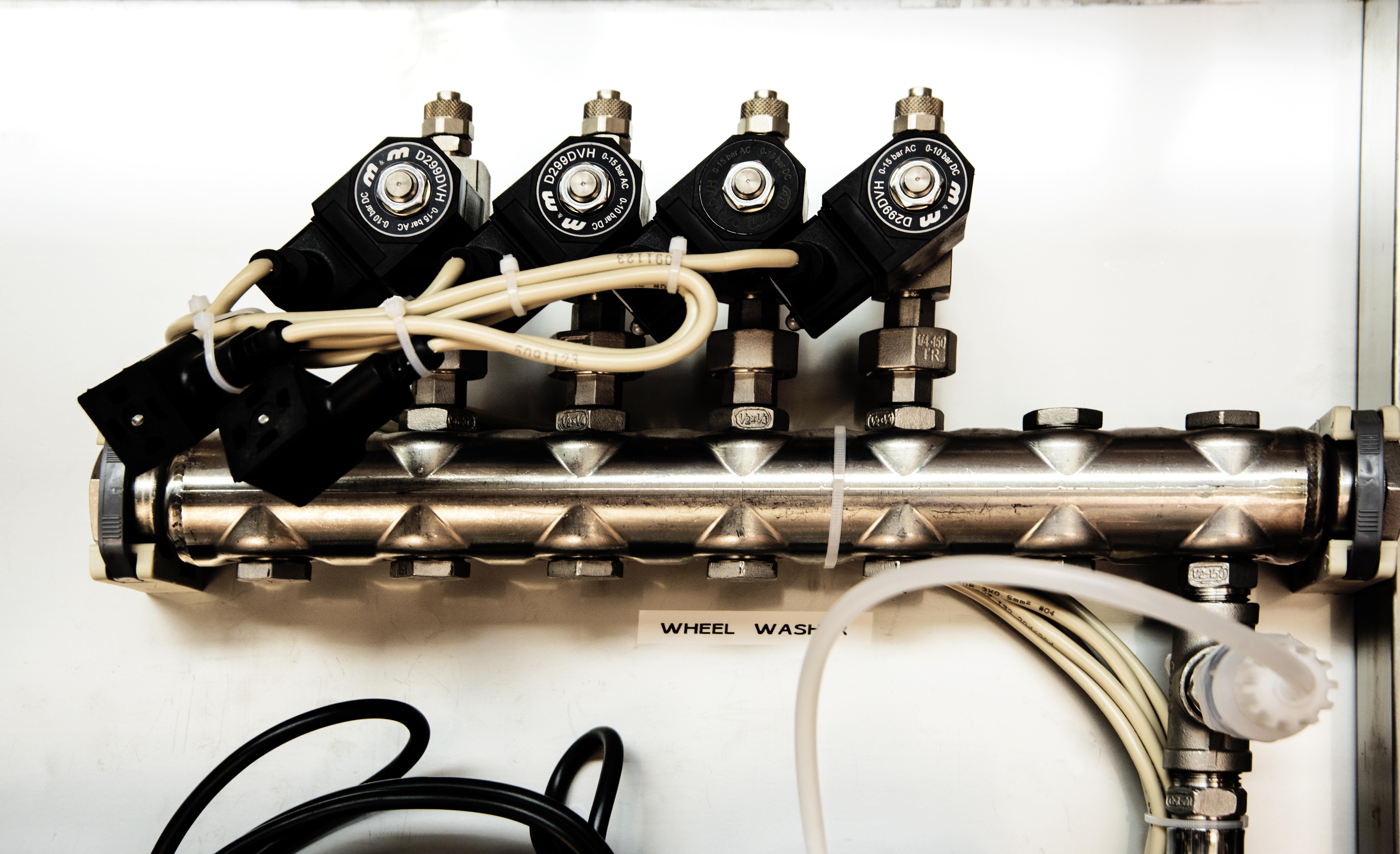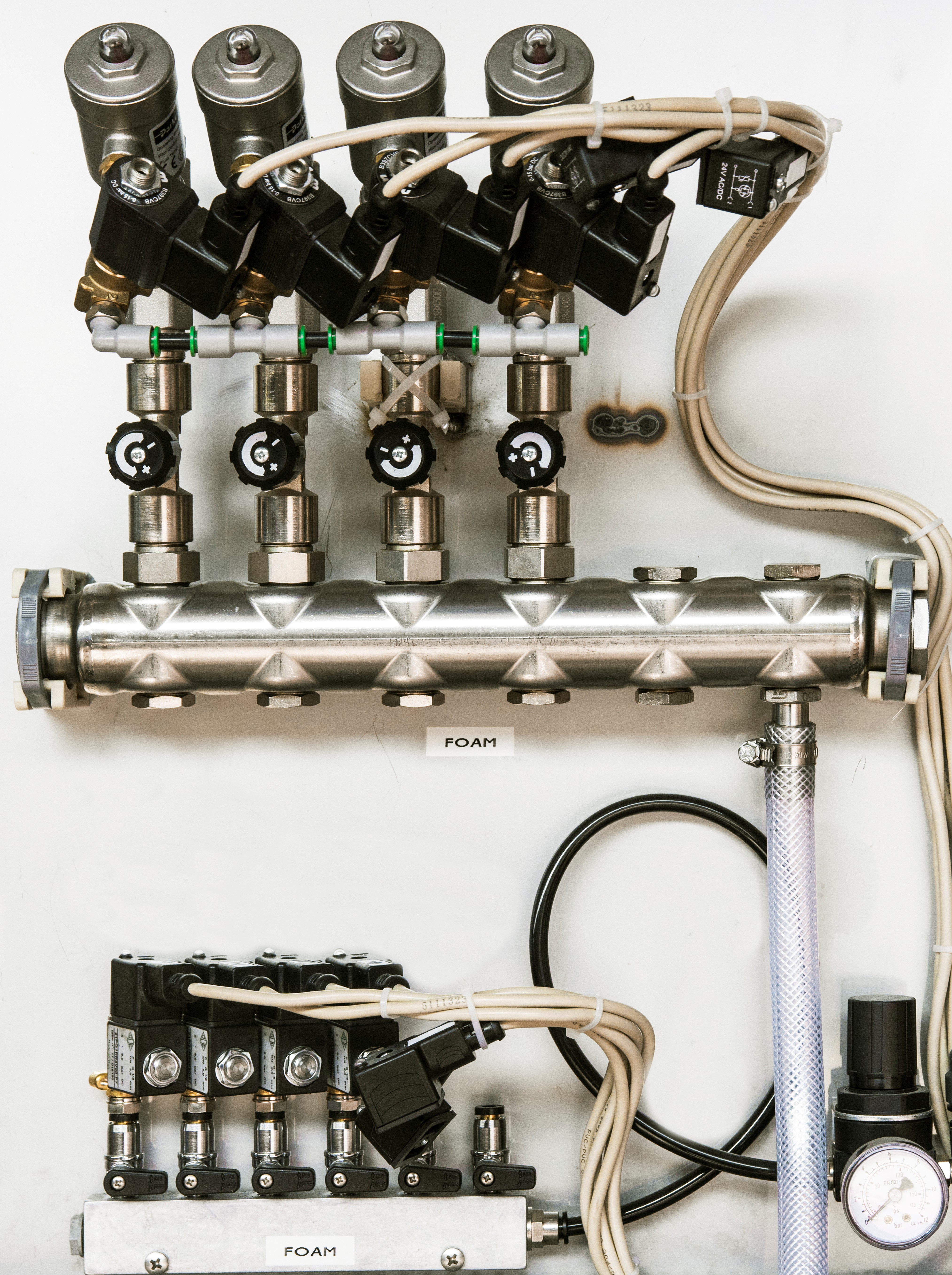 Kolektor za elektro magnetne ventile je iz nerjavečega jekla INOX. Za zagotavljanje večje odpornosti proti koroziji se uporabljajo ponikljani elektro magnetni ventili. Vsak posamezni elektro magnetni ventil, je opremljen s filtrom in kroglično pipo. Opcija: pnevmatski ventili iz nerjavečega jekla INOX.